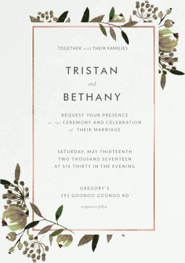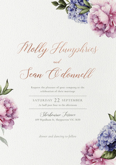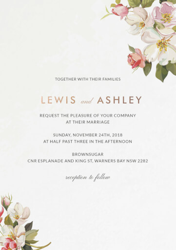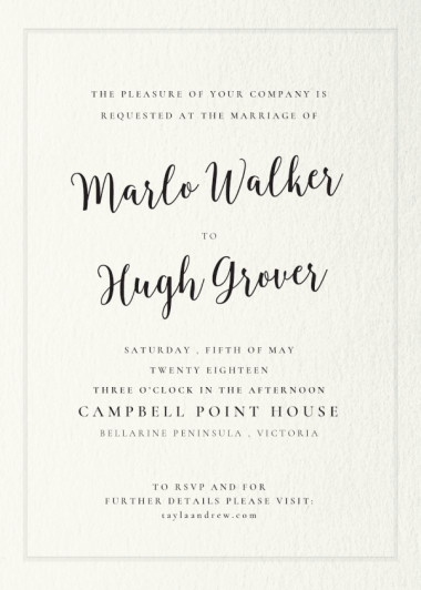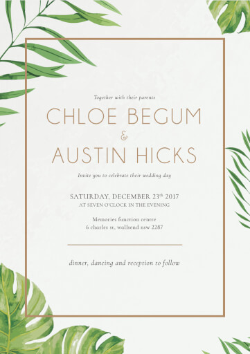 By adding more information or a monogram print, this option can elevate your card whilst saving money. The most popular items to print on the backside are Wishing well poems, details for the accomodation and custom monograms.