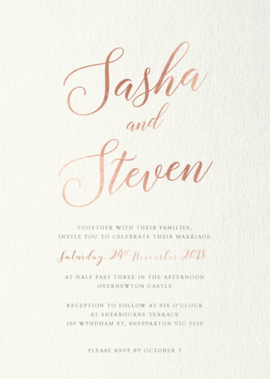 Add foil to lift your stationery from ordinary to extraordinary. Classy, elegant and sure to impress your guests.